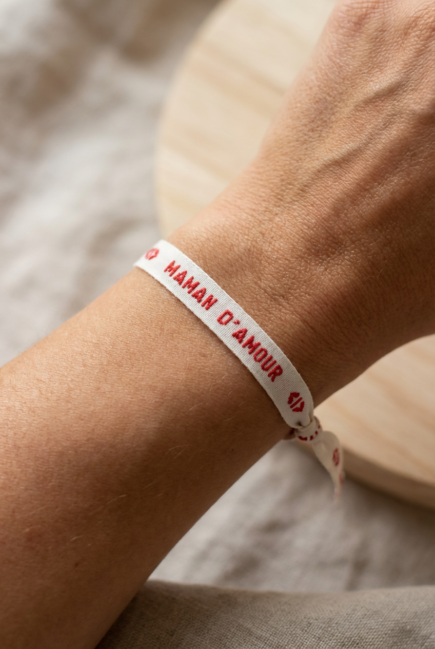 Celui-ci vous rappellera sans doute les étiquettes cousues sur les vêtements de votre enfance. Cette petite touche régressive ravivera vos souvenirs et plaira à coup sûr. Plus de 200 messages pour votre famille ou vos proches sont à découvrir sur notre site. Et pour les grands événements, vous pouvez faire personnaliser vos bracelets.