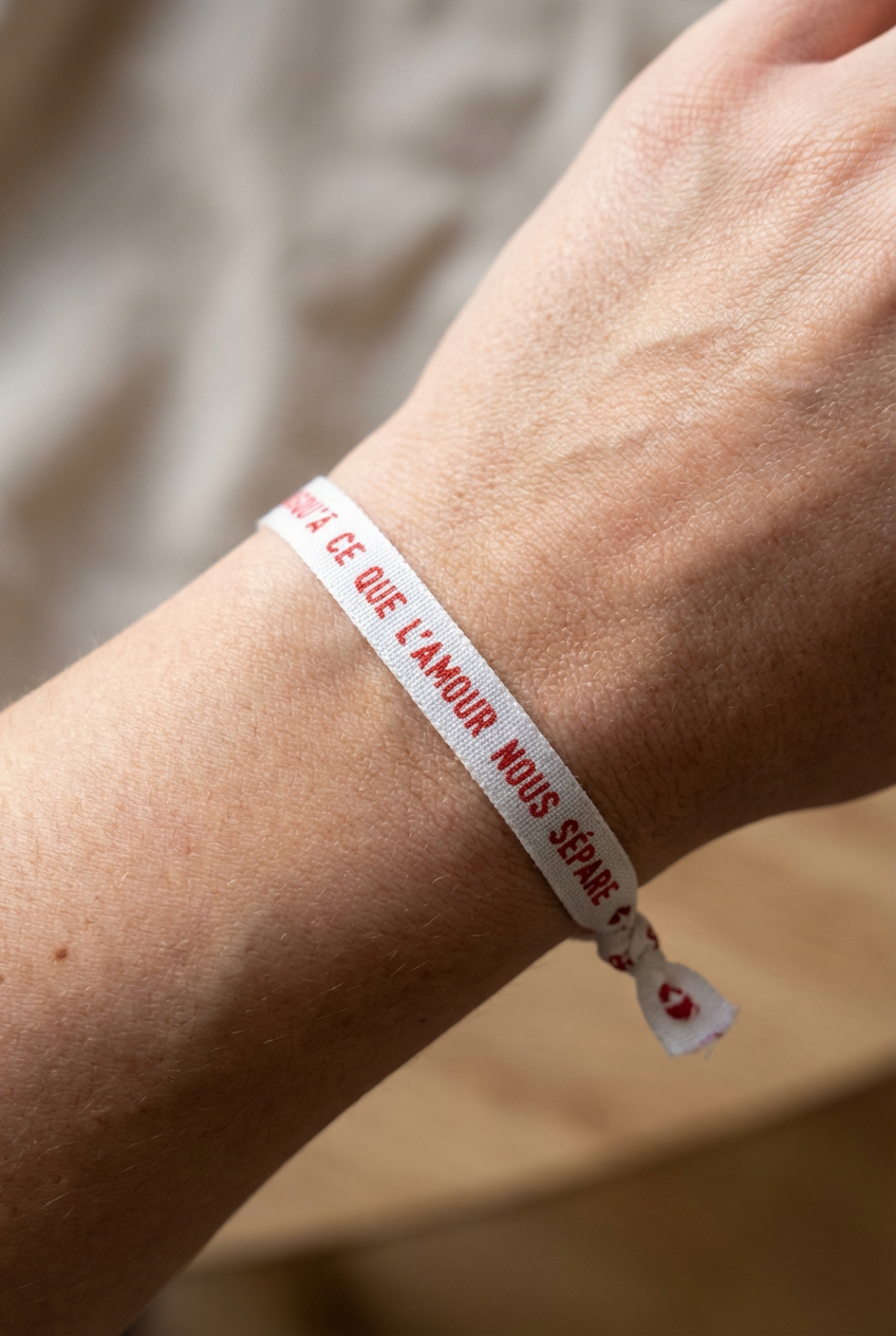 Celui-ci vous rappellera sans doute les étiquettes cousues sur les vêtements de votre enfance. Cette petite touche régressive ravivera vos souvenirs et plaira à coup sûr. Plus de 200 messages pour votre famille ou vos proches sont à découvrir sur notre site. Et pour les grands événements, vous pouvez faire personnaliser vos bracelets.